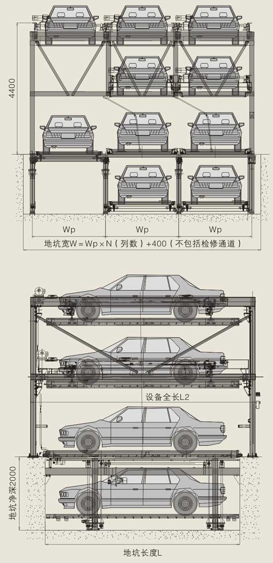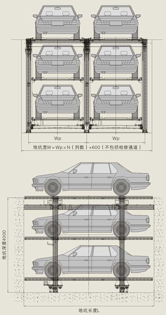 地坑三層簡易升降立體停車設... -
